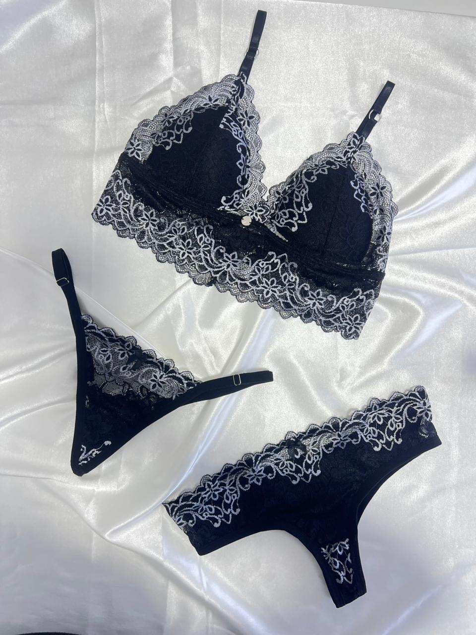 - Incluye: Bralette, hilo y semihilo